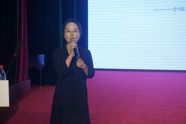 葛俊分享了自己的工作经历,从顾客的角度分析了释玥森林酒店独特的房间设计——愈之宿,介绍了释玥“六识”疗愈的理念,强调酒店需要文化、内容与产品力。她指出,释玥森林酒店以东方特色为主,茶、香、诗、书、儒等均能在酒店的服务中体现。她说,随着时代的变迁,度假酒店由食宿的功能性消费逐渐转为满足人们深层次、全方位的价值追求。她强调:“人们更愿意以酒店文化休闲样态的丰富程度来选择最终的旅游目的地。”葛俊希望新同学们努力学习专业知识,在未来能够以充分的自信加入酒店行业,共同向世界传递东方度假美学。