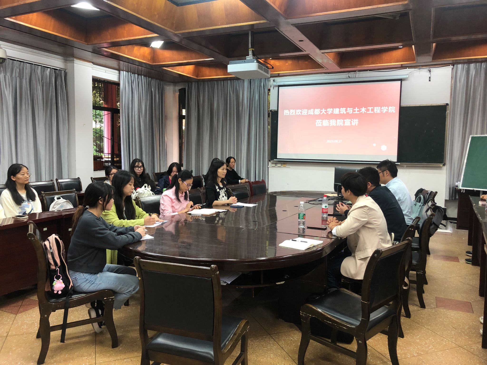 本网讯(文/孙誉心,图/郑曾俊)9月27日,成都大学建筑与土木工程学院副院长董建辉带队莅临pg娱乐电子游戏官网入口进行考察交流。学院党委书记徐秀云、院长郭建英、副院长孙永兴、辅导员郑曾俊以及部分学生代表参加了此次交流。