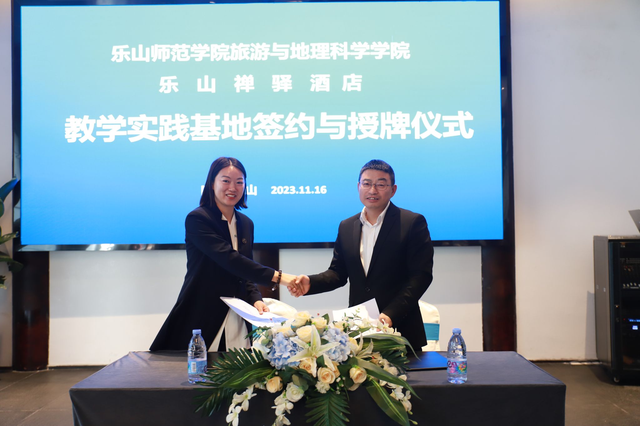 本网讯(文、图/孙永兴)11月16日,pg娱乐电子游戏官网入口与四川禅驿酒店集团乐山禅驿酒店教学实践基地签约与授牌仪式在禅驿酒店嘉定院子多功能厅举行。四川禅驿集团品牌文化总监、乐山禅驿酒店总经理、学校93级优秀校友樊欣,乐山禅驿酒店常务副总经理徐英等与学院党委书记徐秀云,党委副书记、院长郭剑英,副院长但强,副院长孙永兴,四川旅游发展研究中心原主任郑元同共同参与了签约与授牌仪式。