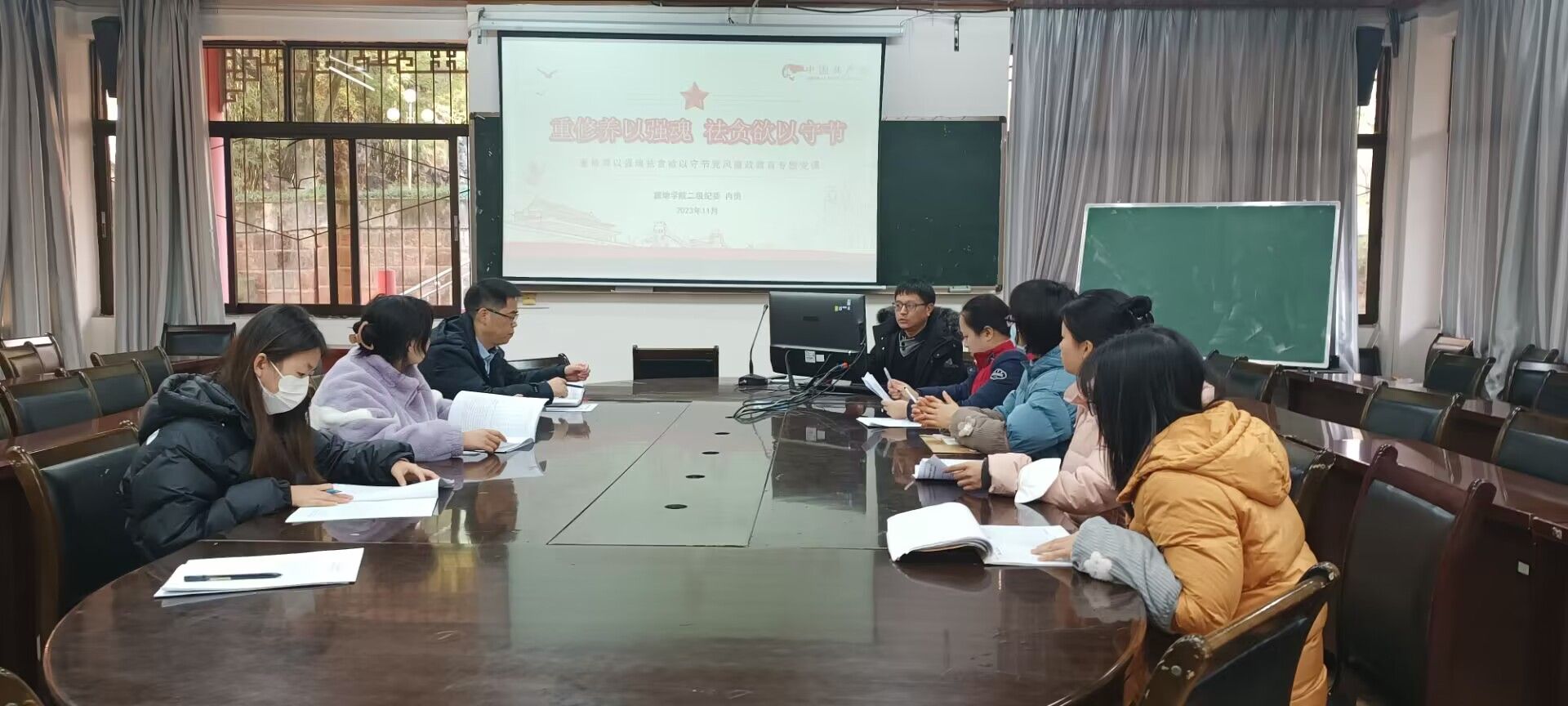 本网讯(文、图/钟婷)11月16日下午,pg娱乐电子游戏官网入口在旅院楼102组织开展了“重修养以强魂,祛贪欲以守节”专题党风廉政教育,旅游学院党总支副书记、纪委书记冉勇及学院部分教师党员参加了此次活动。