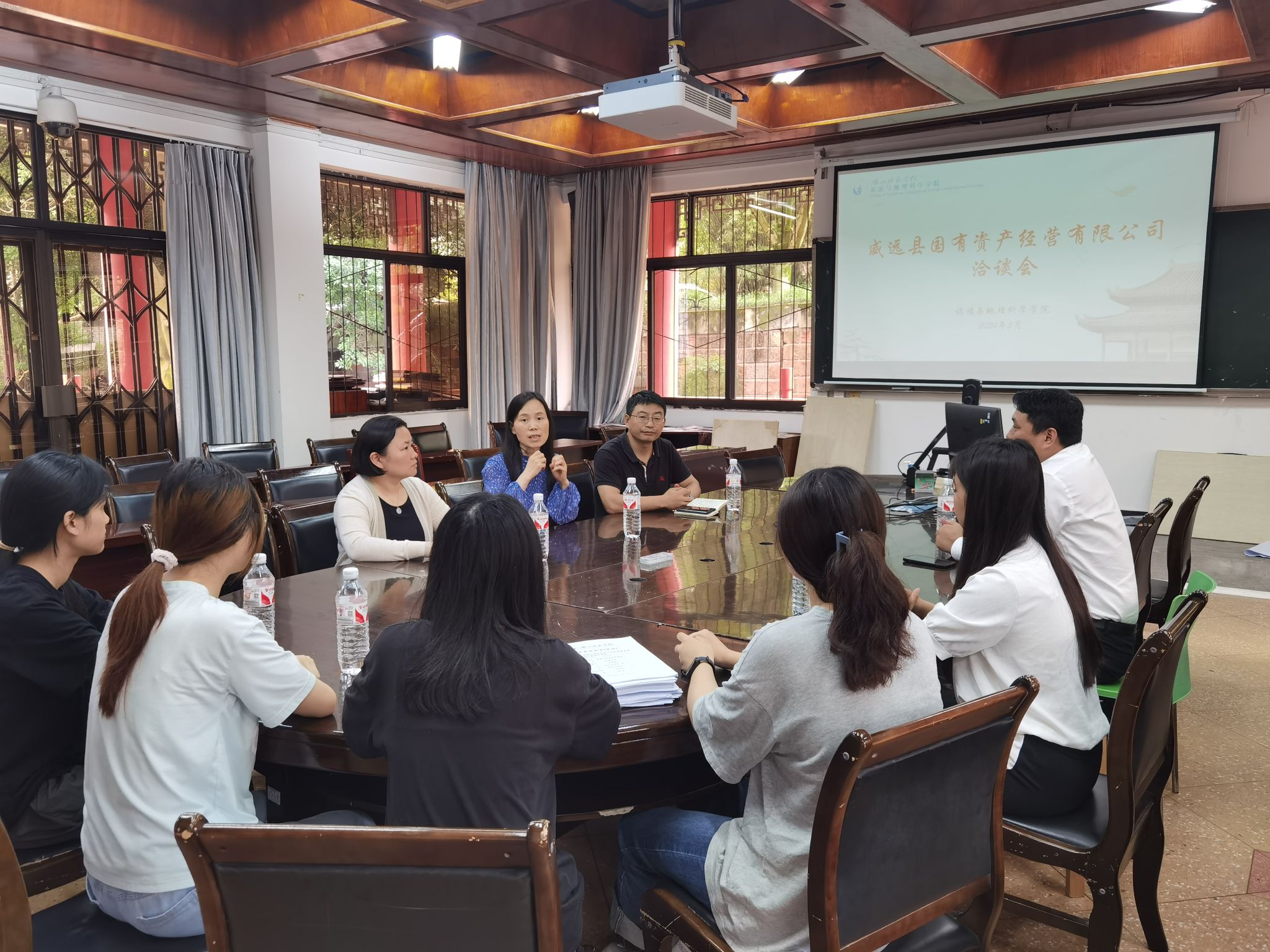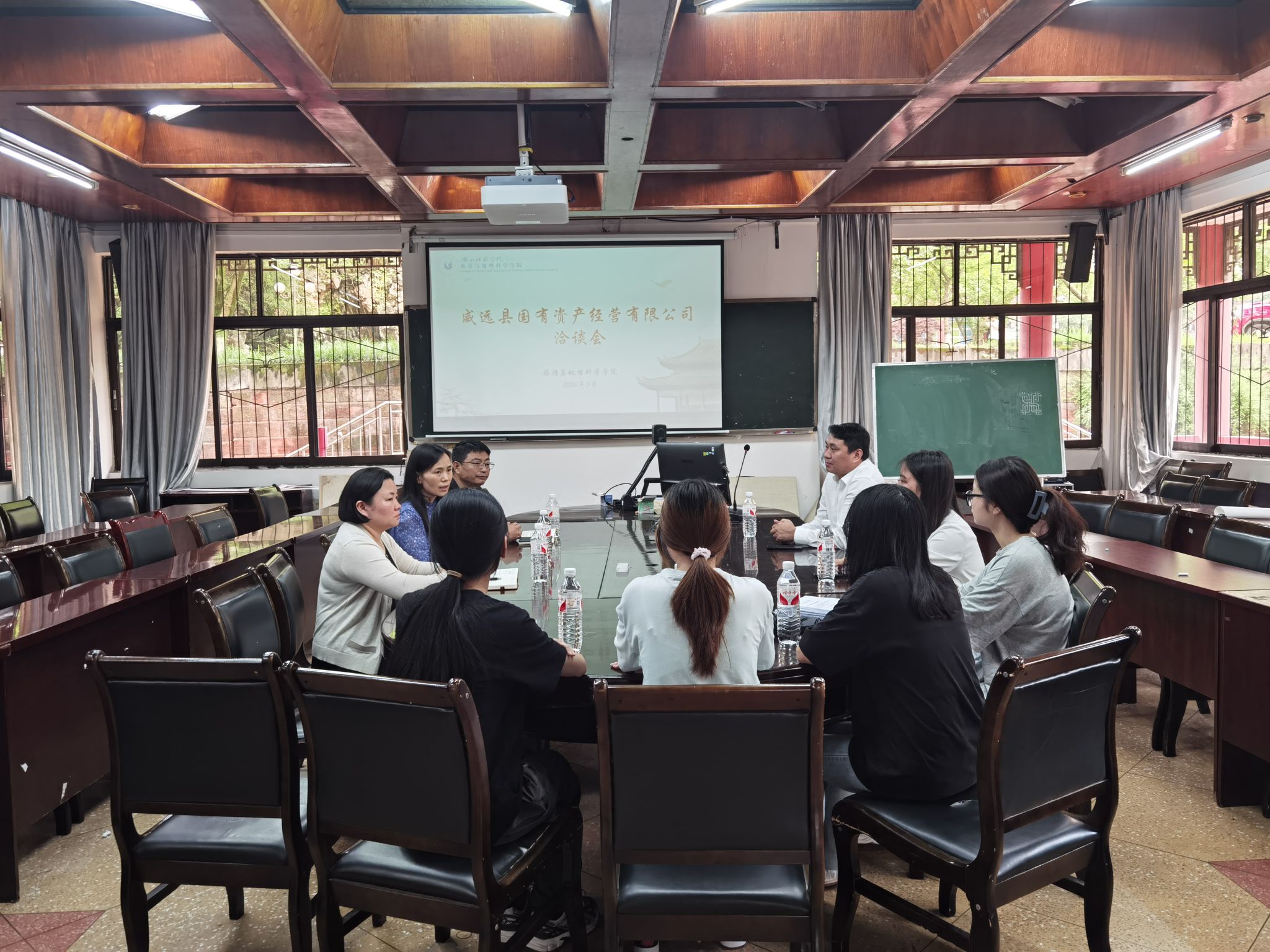 本网讯(文、图/郑曾俊)5月10日上午,威远穹窿旅游投资开发有限责任公司执行董事郭飞、综合管理部代理部长夏雨到pg娱乐电子游戏官网入口洽谈学生实习合作事宜。学院党委书记徐秀云,副院长孙永兴,学院分团委书记、学生工作办公室主任江纳,辅导员郑曾俊以及部分有赴威远县石板河景区实习意向的学生参加了座谈交流。