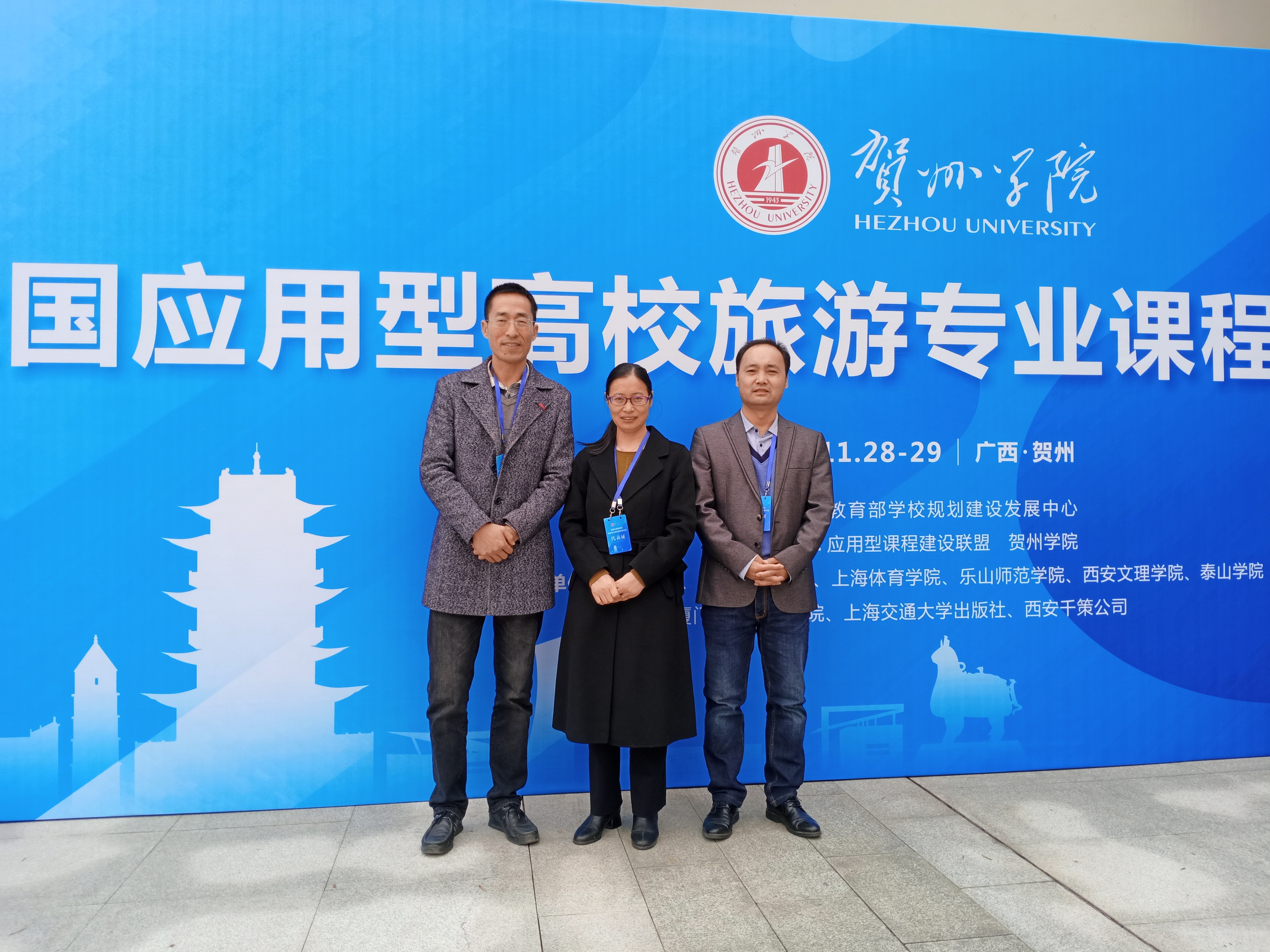 (图/文武克军)11月28日至29日,全国应用型高校旅游专业课程建设研讨会在贺州召开。会议由教育部学校规划建设发展中心主办,应用型课程建设联盟及贺州学院承办,来自全国近50所高校的专家、教师代表超过百人参加会议,共商应用型高校旅游专业课程建设。乐山师范学院是本次会议的协办单位,旅游学院院长郭剑英、副院长但强和四川世界遗产普及基地主任武克军博士参会。