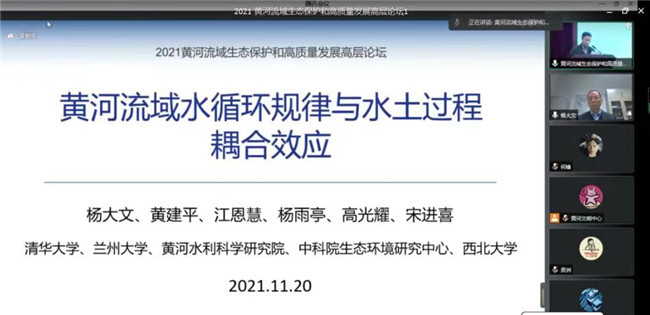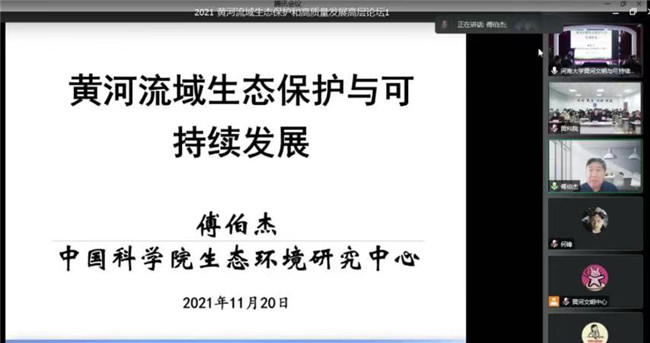 本网讯(图、文/夏军)为贯彻落实习近平总书记在黄河流域生态保护和高质量发展座谈会上的重要讲话精神,11月20日,河南大学联合中国地理学会、黄河水利委员会黄河水利科学研究院、河南省发展和改革委员会、河南省文物局、郑州市人民政府共同举办了“2021 黄河流域生态保护和高质量发展高层论坛”。此次论坛汇聚国内一流专家学者聚焦探讨黄河流域生态保护和高质量发展,pg娱乐刘洪江教授、夏军博士参加了在线会议。