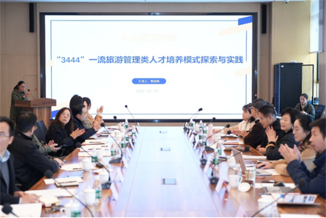 会议的第一环节,成都大学副校长彭晓琳教授致辞,四川省高校旅游管理类专业教学指导委员会(以下简称“教指委”)主任张梦教授致辞并对教指委2024年工作进行总结。第二环节,来自成都大学、成都信息工程大学、四川旅游学院、乐山师范学院、成都体育学院的教指委委员作了旅游管理专业面临的挑战与机遇、旅游管理类人才培养的经验、特色等分享。郭剑英作了题为“3444”一流旅游管理类人才培养模式探索与实践的主题分享。第三环节,与会专家围绕“新质生产力与旅游教育发展”主题自由研讨。