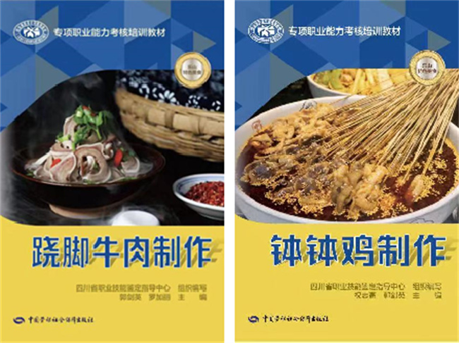 本网讯(文、图/薛文娟)近日,人力资源和社会保障部(以下简称“人社部”)办公厅发文公布第四批技工教育和职业培训“十四五”规划教材目录。由四川省职业技能鉴定指导中心指导、乐山市嘉州美食文化研究院组织编写,中国劳动保障出版社出版的乐山四大特色美食《钵钵鸡制作》《跷脚牛肉制作》《麻辣烫制作》《甜皮鸭制作》专项职业能力考核培训教材成功入选!pg娱乐pg娱乐电子游戏官网入口郭剑英教授与乐山市嘉州美食研究院院长祝志高等合作主编了《翘脚牛肉制作》《钵钵鸡制作》2本专项职业能力考核培训教材荣列其中。